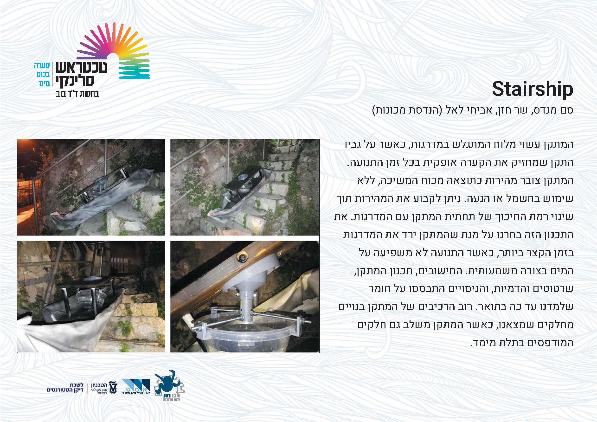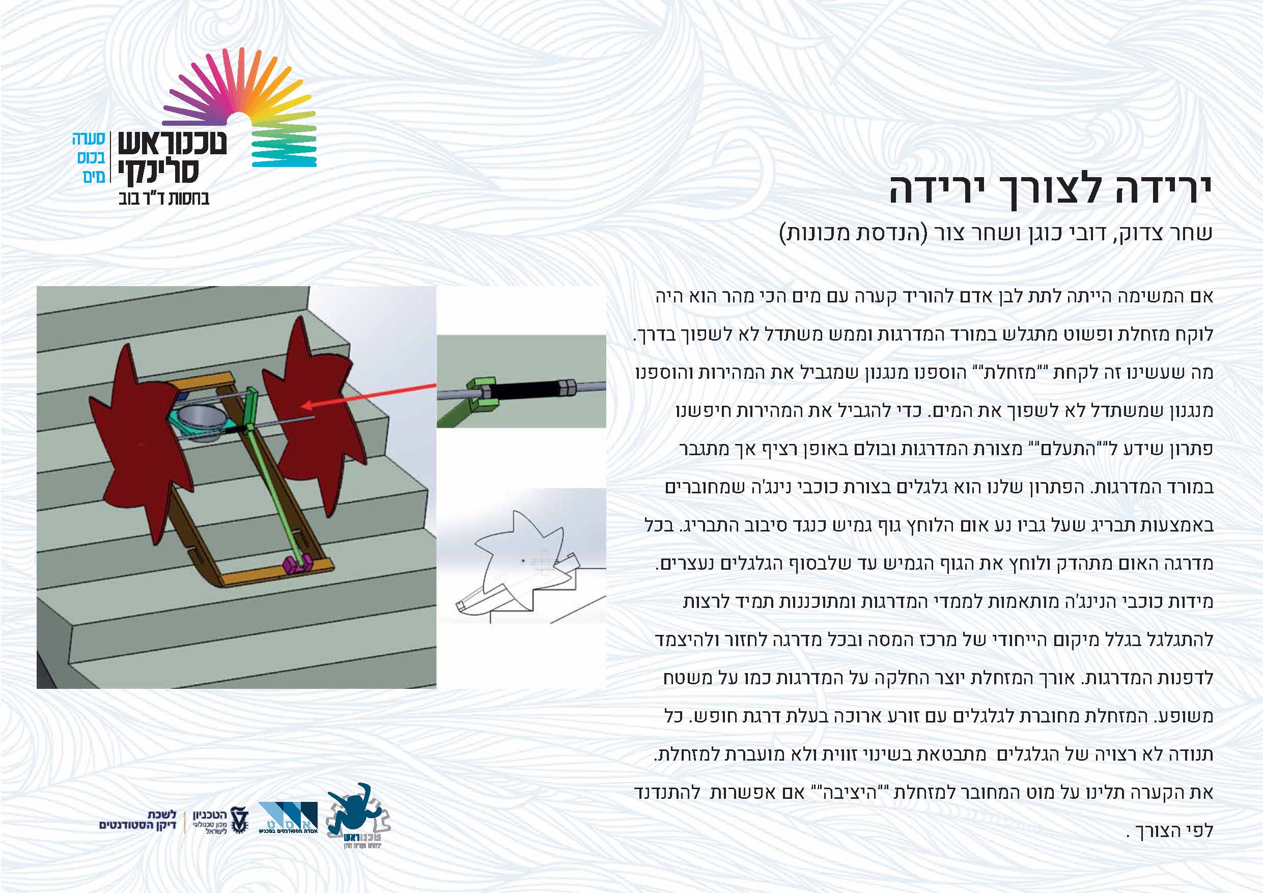 בתחרות טכנוראש סלינקי, הצוותים התמודדו עם אתגר הדורש חשיבה יצירתית בהשראת הסלינקי: בניית מתקן היורד במדרגות בזמן מינימלי תוך נשיאת מיכל מים פתוח. ככל שכמות מים גדולה יותר מגיעה לנקודת הסיום בתחתית המדרגות, ניקוד הצוות יהיה גבוה יותר.