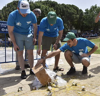 האתגר: ללכוד ביצה תלויה מעל לקרקע ולהנחיתה בשלמותה לקרקע בקרבה מקסימאלית למטרה.