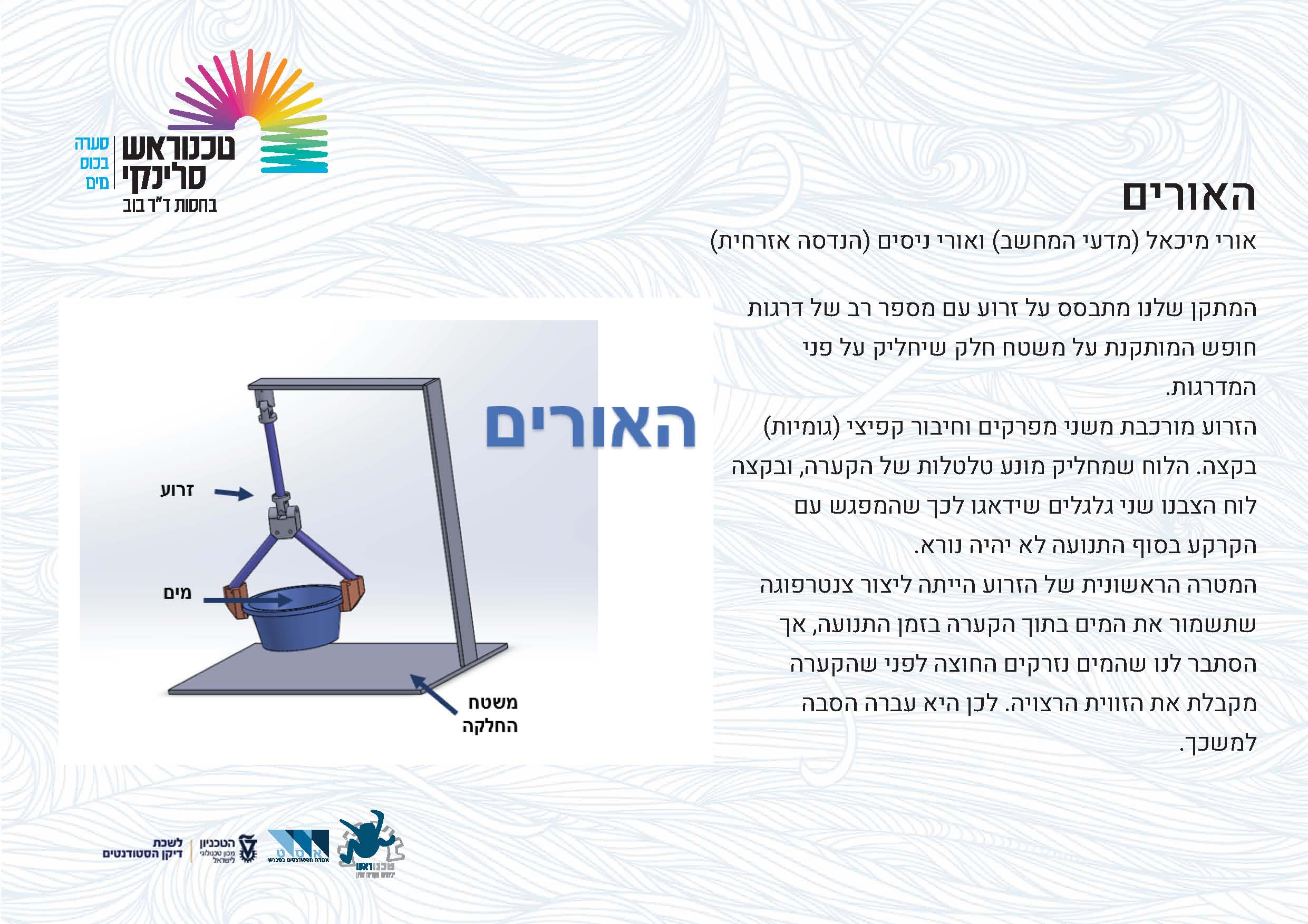 נדרש לתכנן ולבנות מתקן המתחבר לצינור מים חיצוני באמצעות ווסת לחץ. על המתקן לנתב את זרם המים הנכנס כך שיבצע שלוש משימות: